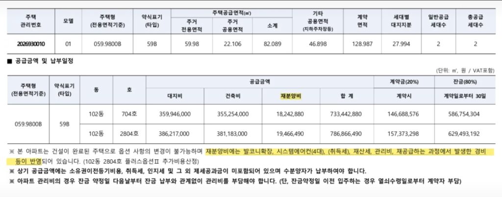 이번 공급분은 과거 불법 전매 등 부정한 방법으로 체결된 계약이 취소되면서 나온 물량입니다. 가장 큰 매력은 현재 시세가 아닌 2022년 당시 분양가로 공급된다는 점입니다.