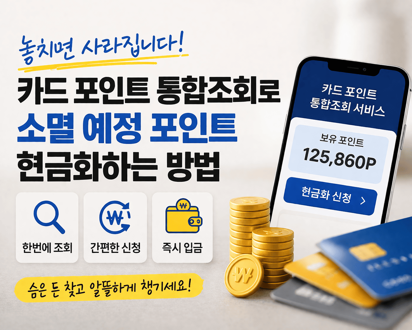 카드 포인트 통합조회란? 카드 포인트 통합조회는 여러 카드사에 흩어져 있는 포인트를 한 번에 확인하고, 소멸 예정 포인트를 쉽게 확인할 수 있는 서비스입니다. 카드사별로 따로 로그인할 필요 없이 본인 인증만으로 보유 포인트, 소멸 예정 포인트, 현금 전환 가능 여부 등을 확인할 수 있어 많은 사람들이 활용하고 있습니다. 왜 카드 포인트 현금화가 중요할까? 카드 포인트는 일정 기간이 … 더 읽기